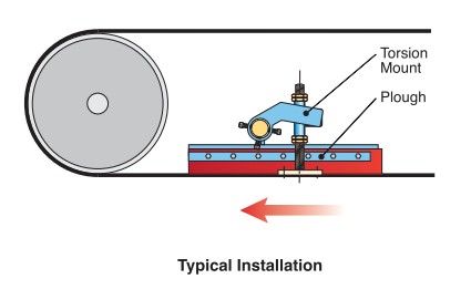 Pług zgarniający V typ E4000 może być stosowany dla taśm przenośnikowych o szerokości od 450 mm do 2400 mm oraz do prędkością do 6 m/s.